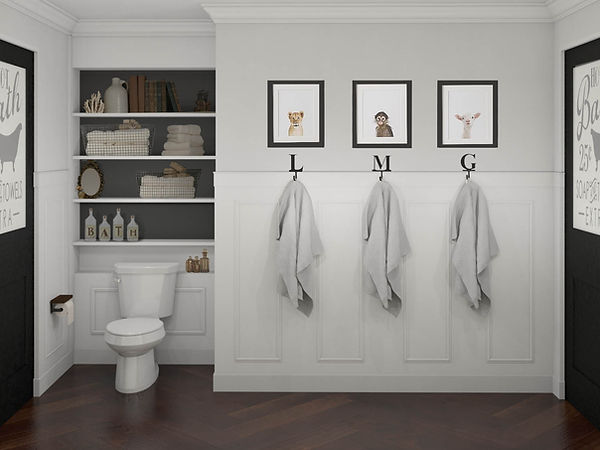 This is a concept design for a bathroom remodel in progress. This Jack and Jill bath in Biltmore Forest, keeps the traditional charm of the home, while giving the kids an updated space.