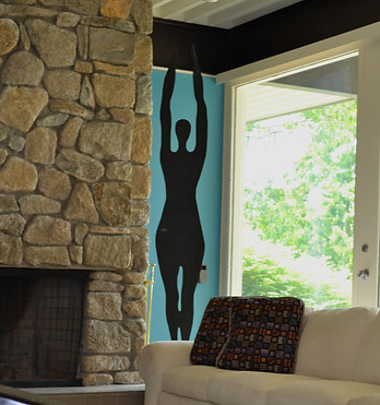 Increasing the amount of light in the master closet / bath area was challenging due to the steel, flat roof structure. Glass canister lights were selected to provide a connection with original metal can lights found elsewhere in the home.